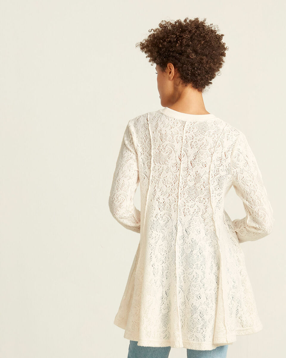 Free People Coffee In The Morning Tunic Top In White Knit Lace - Size Small