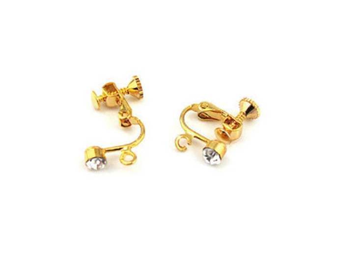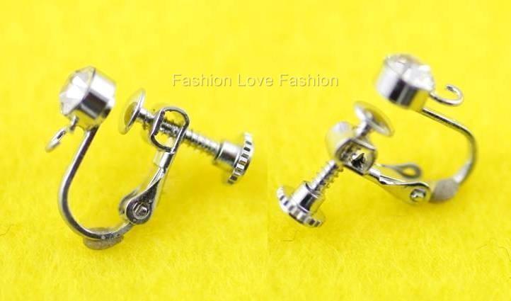 4 Pairs (8 Pieces) Clip On Screw Back Earring Findings w/Rhinestone Silvertone/Goldtone
