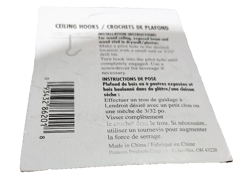 Panacea Ceiling Hook can hold wind chimes, flowering baskets, tube feeders or lanterns. The sharp points bite into the wood quickly and easily. Makes your garden look more complete. Powder-coated for added durability. Display your hanging items from the Panacea Ceiling Hook.