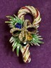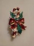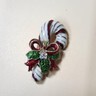 Enamel Candy Cane Brooch Christmas Rhinestones Leaves Bow Jewelry Holiday Pin