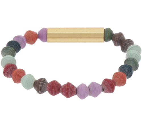 Alloy Gravel Beaded Bracelet Orange with Gold Accents and Colorful Beads