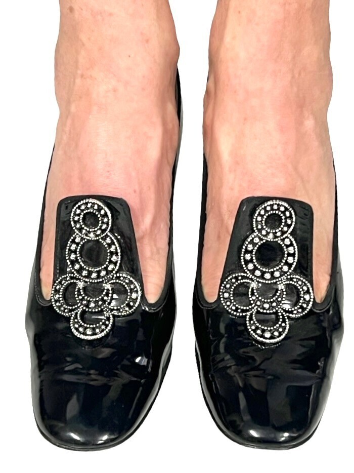 VTG 70’s Town & Country Black Patent Leather Pilgrim Pumps Block Heel 7.5 N