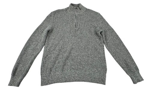 Calvin Klein Sweater Mens Large Gray Long Sleeve Pullover Zip Cotton Casual