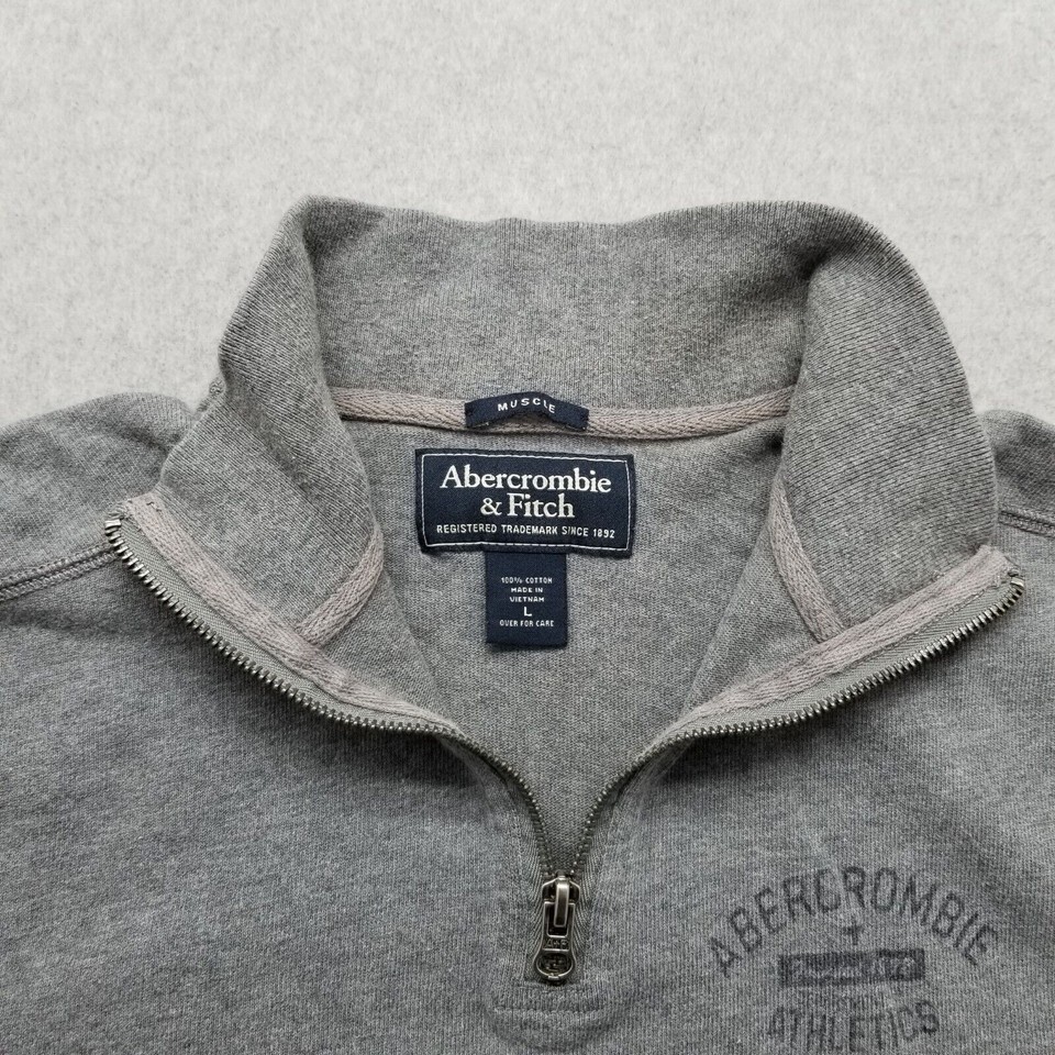 Abercrombie & Fitch Sweater Mens Large Gray Pullover Mock Neck Zip Casual Boxy