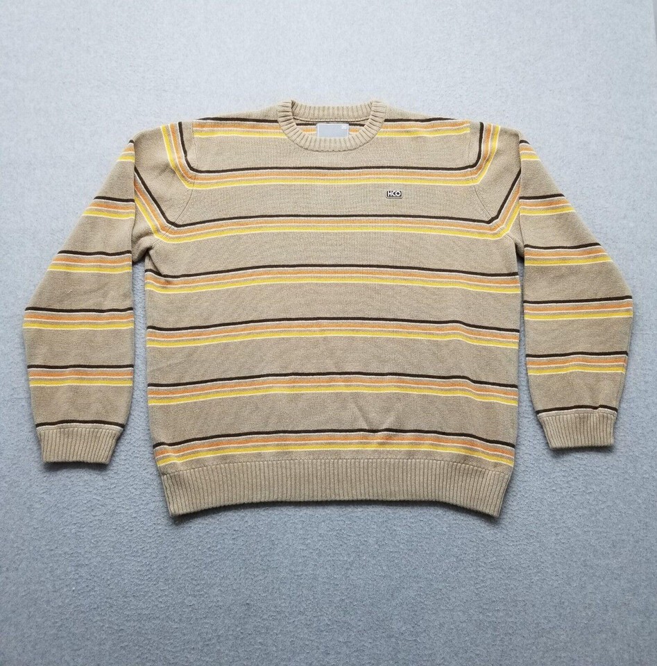 Hollister Sweater Mens XL Tan Pullover Striped Crew Neck Casual