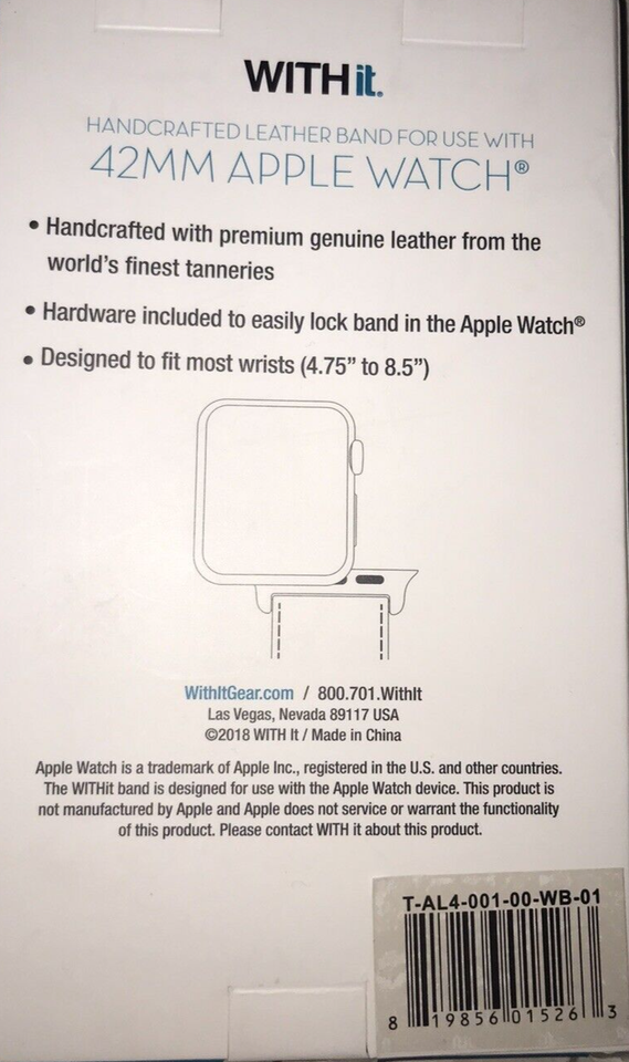 Genuine Leather Strap Band for Apple Watch Series 4 44mm Black.