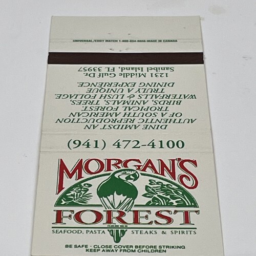 Lot Of 2 Matchbook Cover Morgan’s Forest restaurants Sanibel Island, Fl gmg