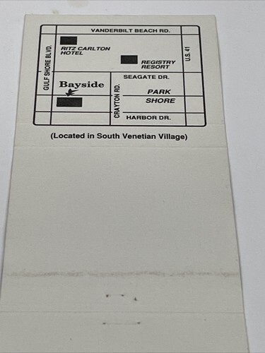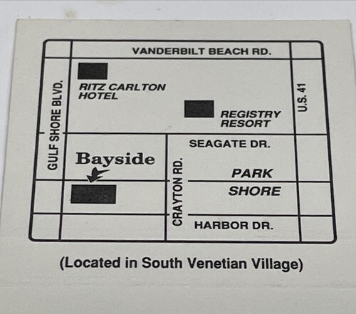 Matchbook Cover Bayside Seafood Grill& Bar Naples, FL Unstruck gmg