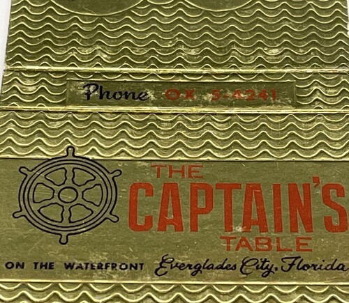 Matchbook Cover The Captain’s Table On The Waterfront Everglades City, FL gmg