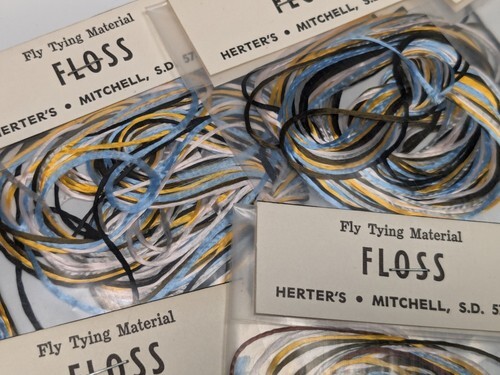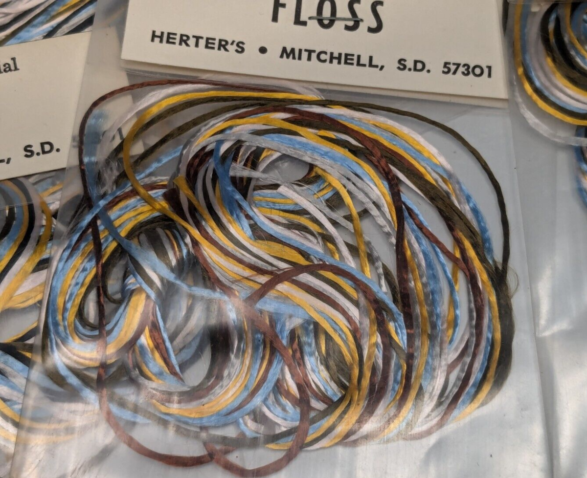 10 Packs of NOS Vintage Herter's Fly Tying Floss - Blue Yellow Brown White +