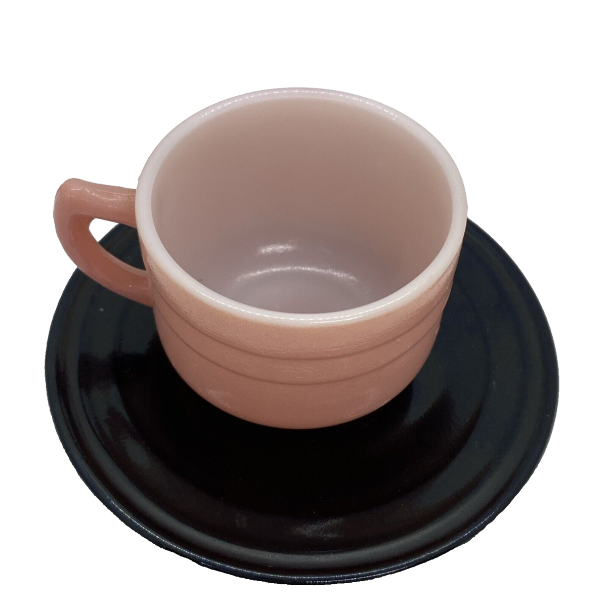 Hazel Atlas Pink & Black Moderntone Milkglass Set of Tea Cup w Saucer, Children