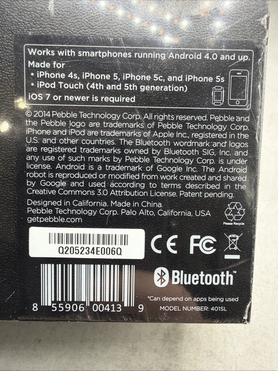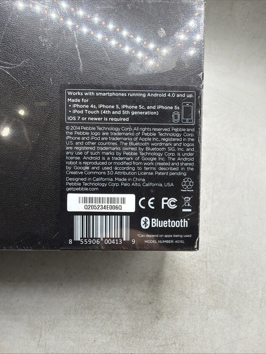 2014 Pebble STEEL 401SL (Black & SIlver) Bluetooth SmartWatch Stainless Band NOS
