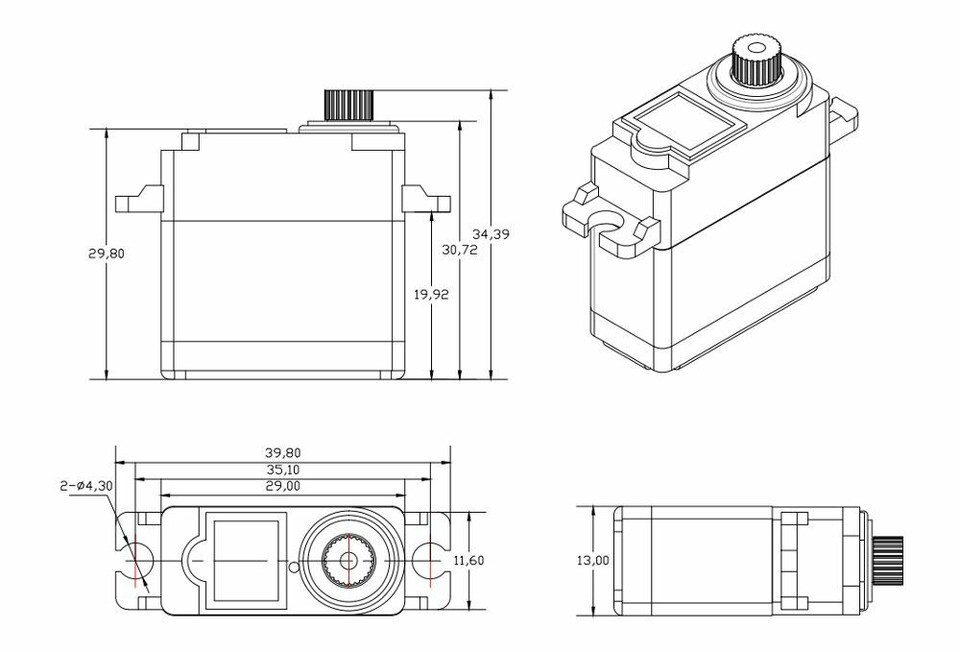 Stall Torque: 4kg.cm / 4.6kg.cm