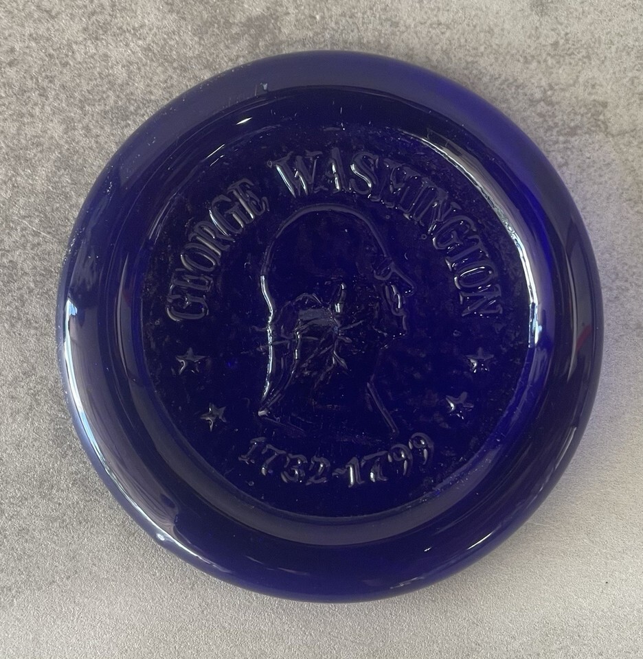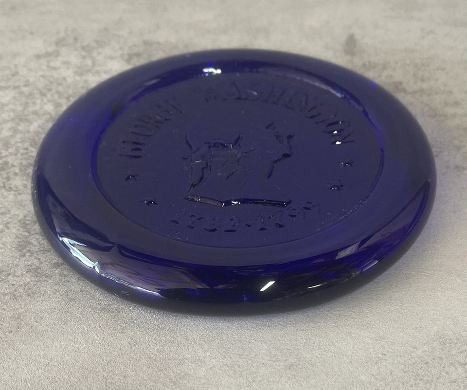 Blue Glass Paperweight - George Washington 1732-1799 - Clevenger Bros Glassworks