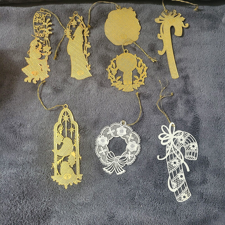 Lot 8 Tamerlane Christmas Ornaments 6 Color Enamel on Metal + 2 White Winterlace