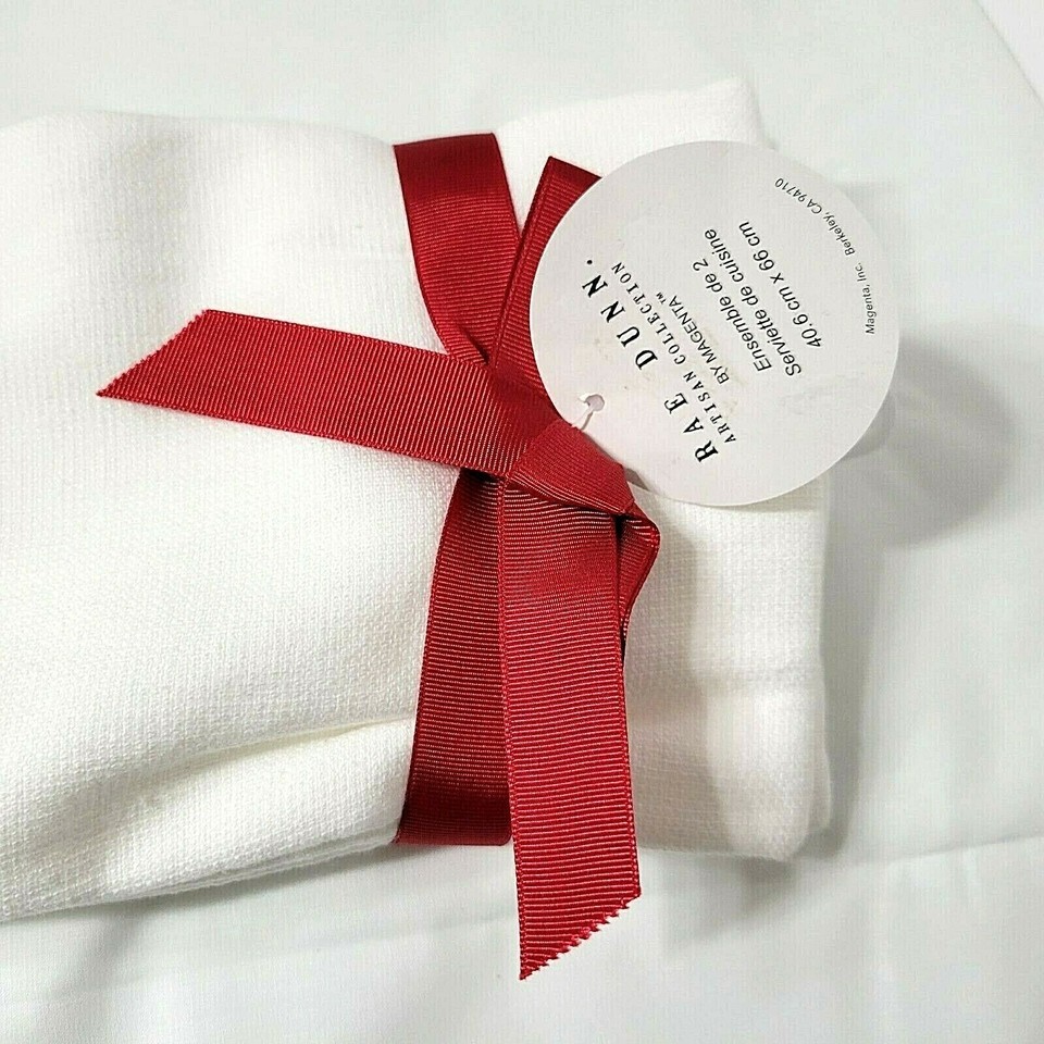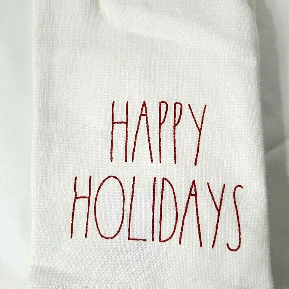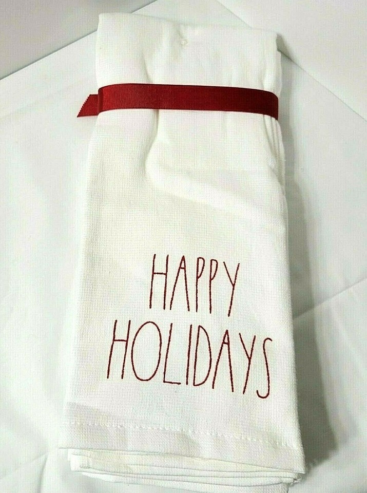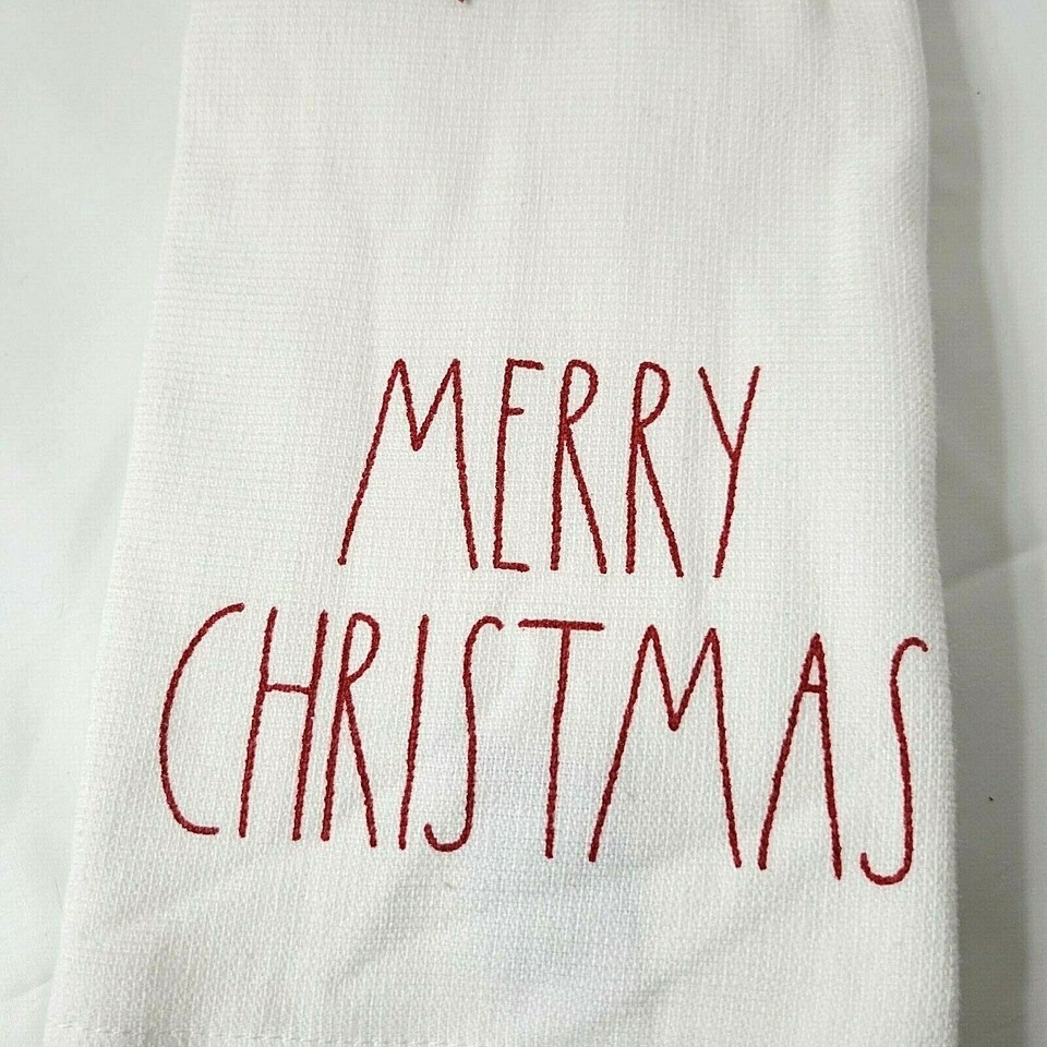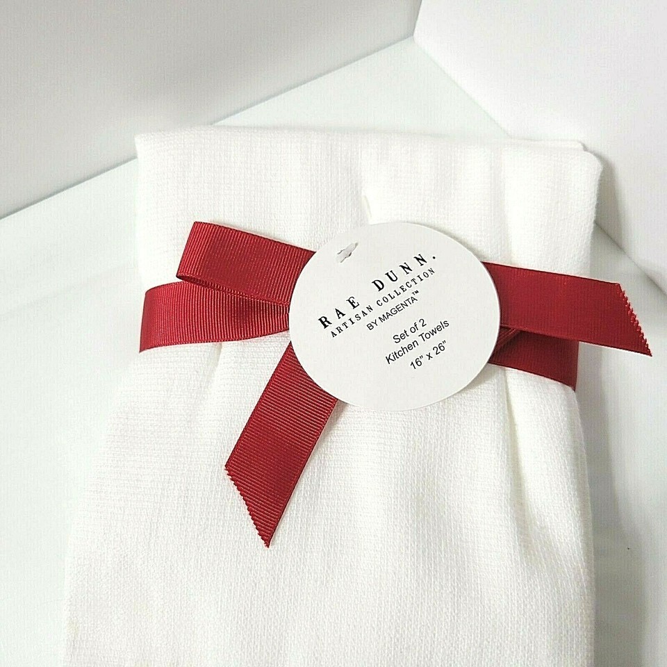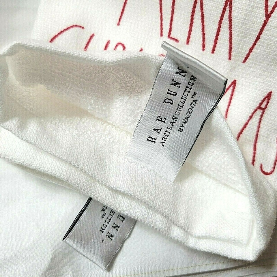 NEW White Red 2 Rae Dunn Magenta Kitchen Towels Merry Christmas Happy Holidays