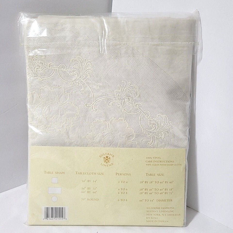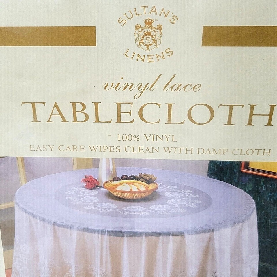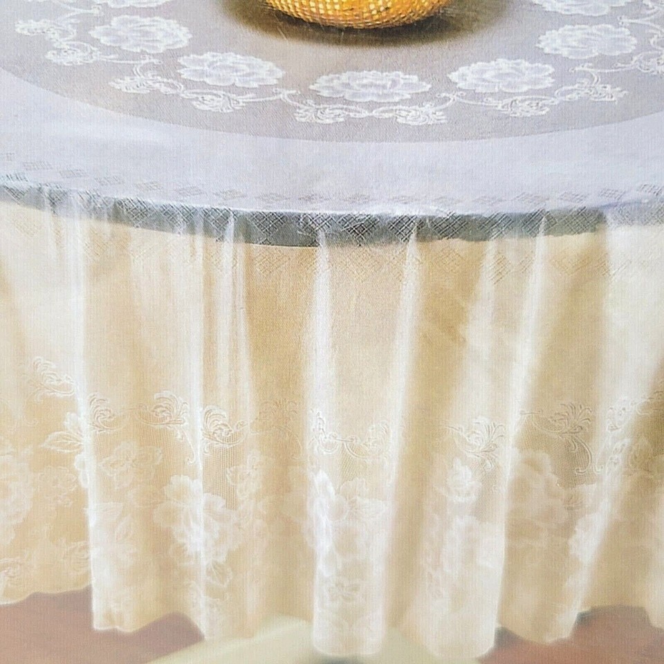 VINYL TABLECLOTH 70" Round Cream Floral Design Lace NEW UNOPENED WIPE CLEAN