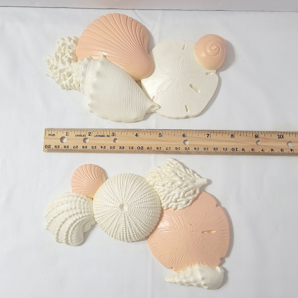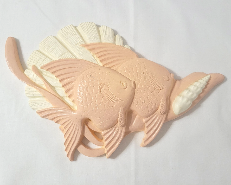Vtg 4 pc Set Burwood Angel Fish & Shells Wall Art Ocean Decor Peach Off-White