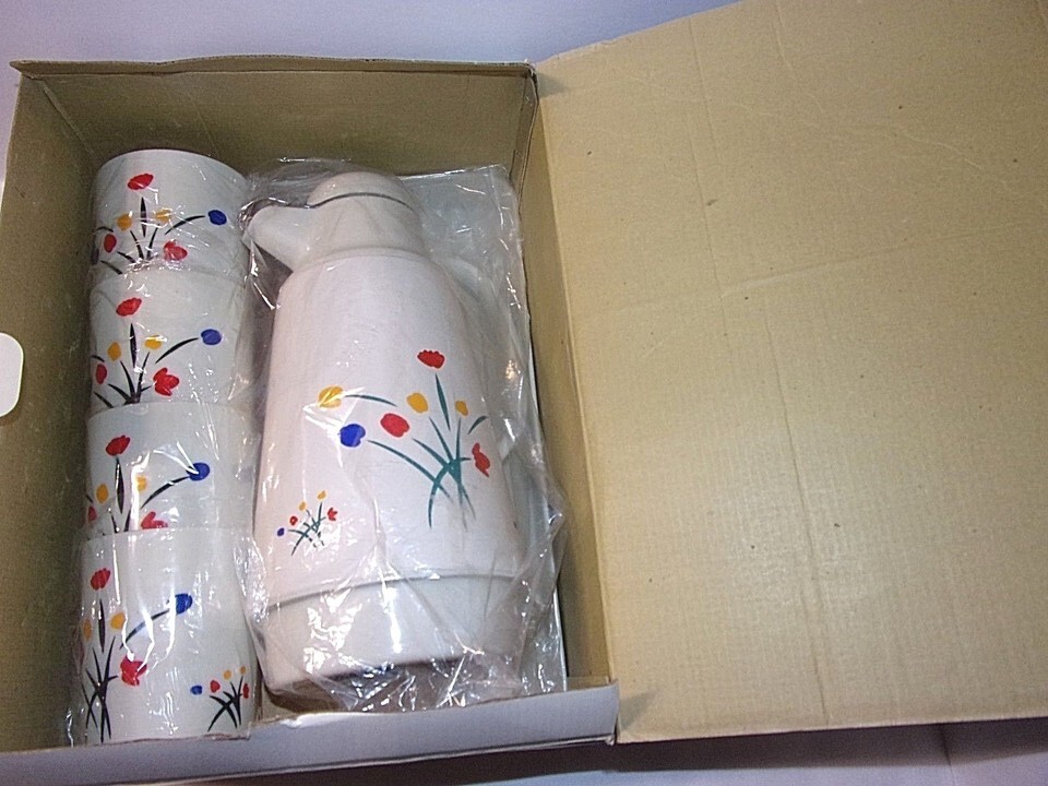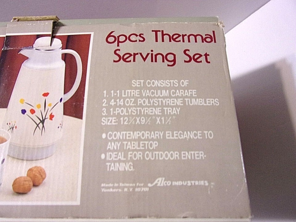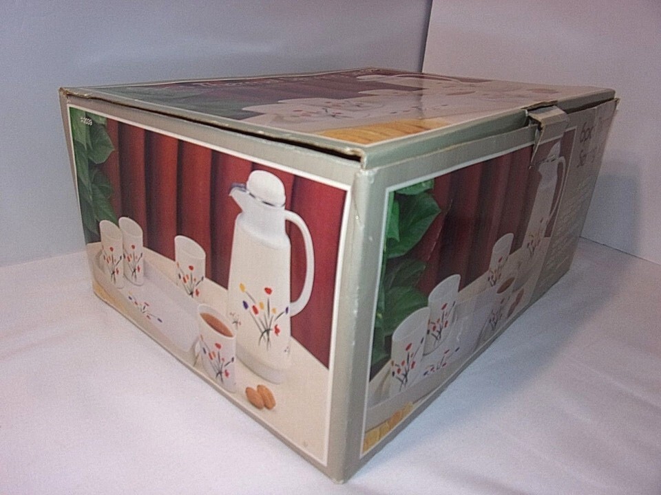 Vintage NEW 6 Piece Floral Serving Set Carafe Tumblers Cups Tray Polystyrene
