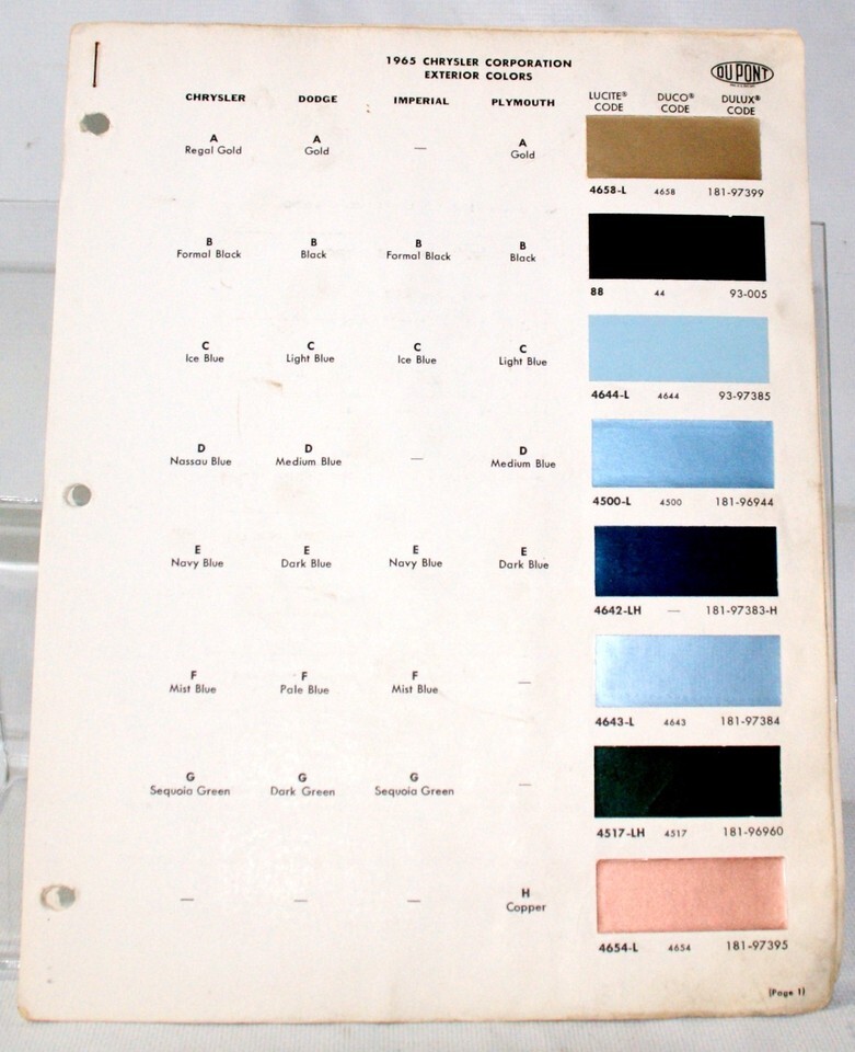 1965 Chrysler/Imperial/Plymouth/Dodge Exterior Color Samples