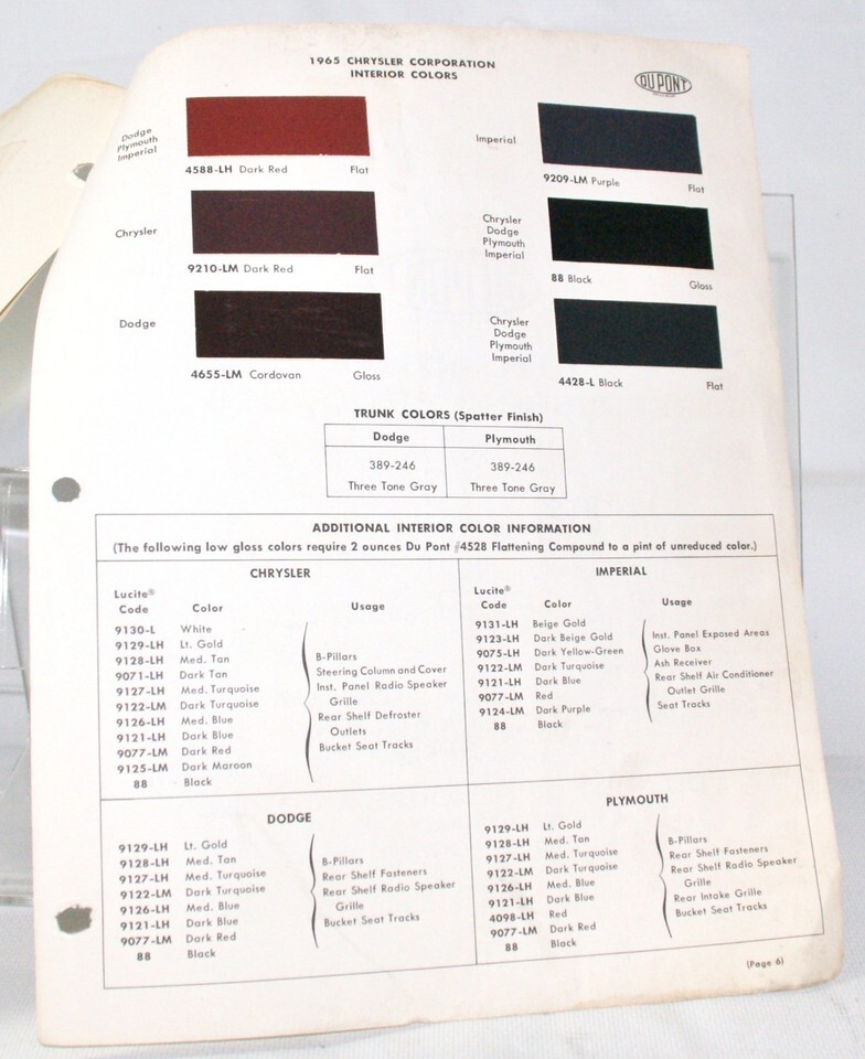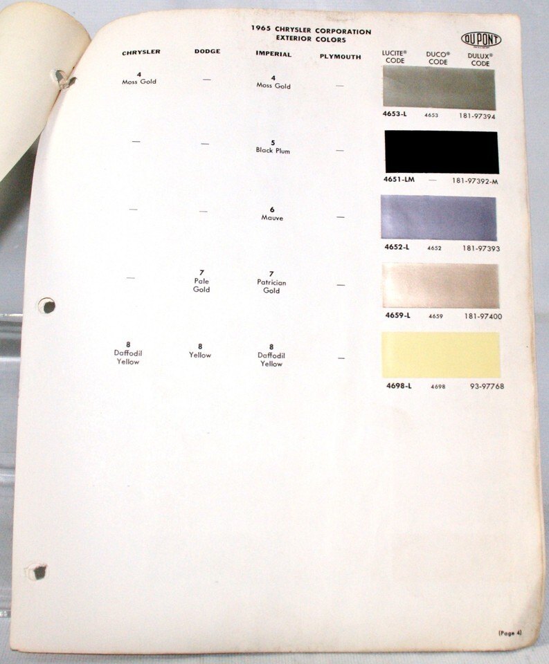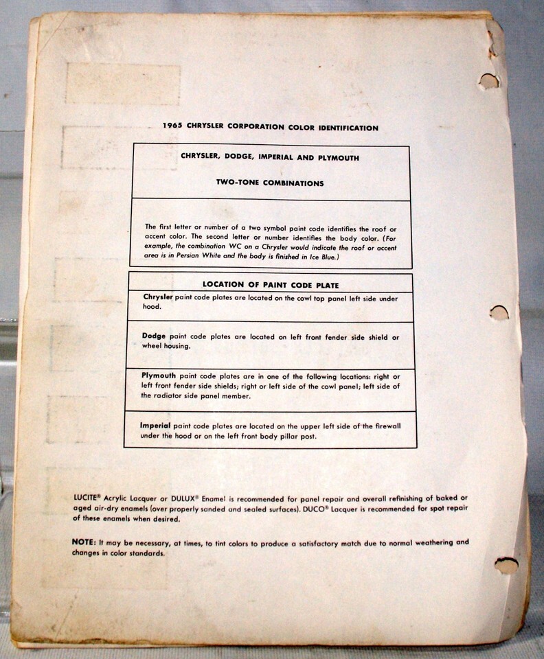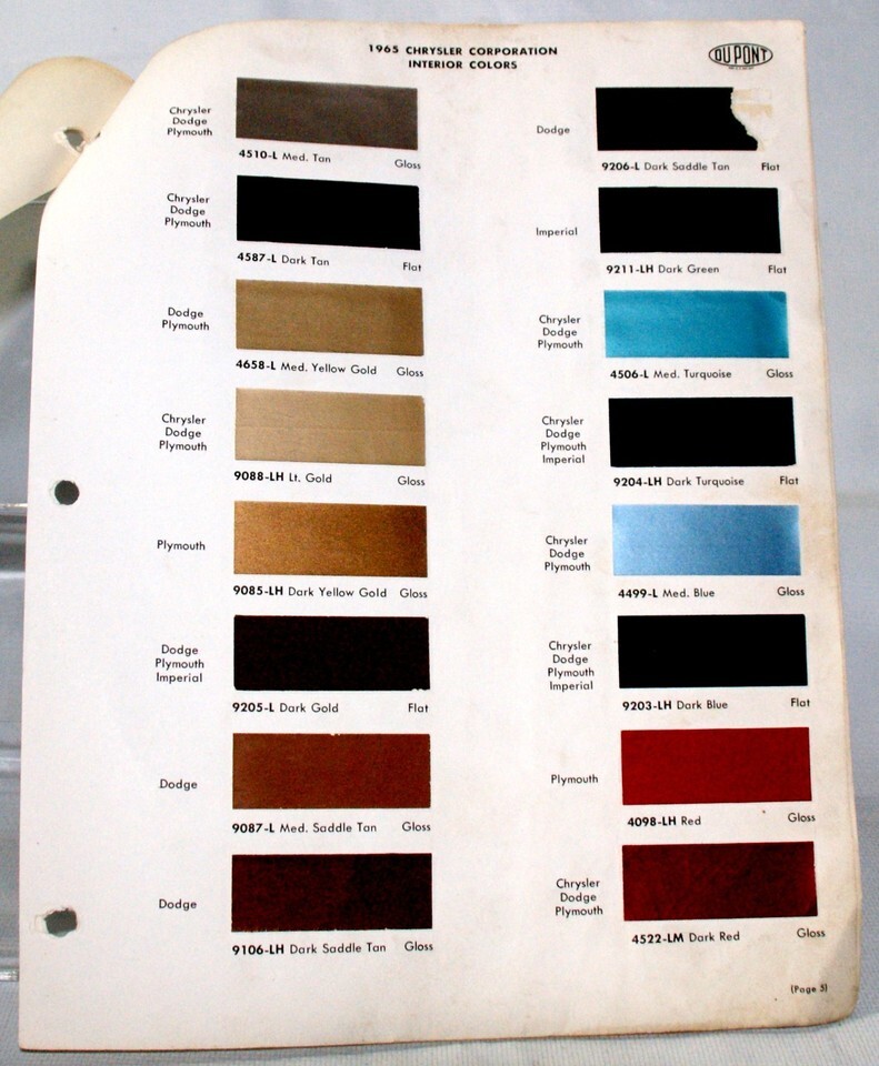 1965 Chrysler/Imperial/Plymouth/Dodge Exterior Color Samples 696