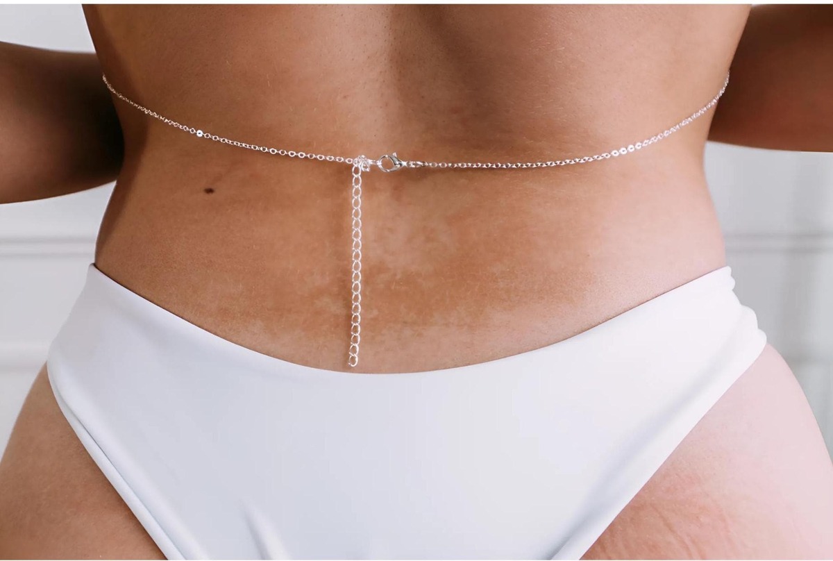 This handmade gold-filled belly chain is designed to bring a touch of elegance to wedding gowns, open-back dresses, honeymoon outfits, and minimalist everyday looks. Crafted one by one using fine 1.50mm gold-filled flat cable chain, it offers a refined, luxurious feel that enhances your natural beauty without overpowering your style.