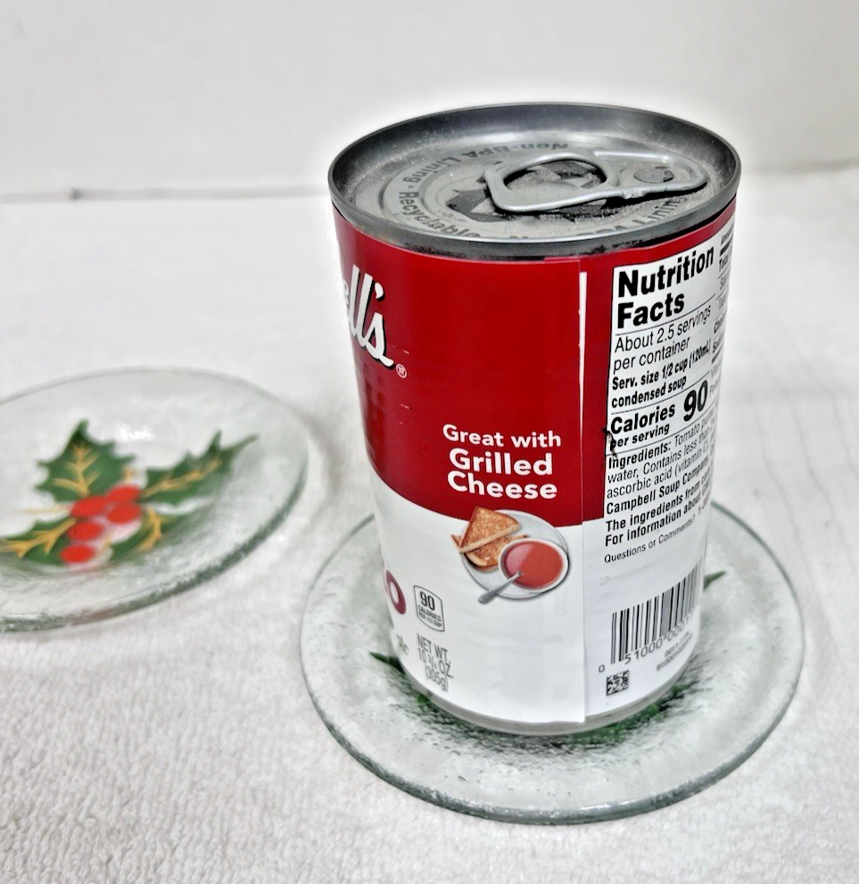 2 Christmas Holly & Berry Fused Glass Mini Plate Coaster Set 4" Great Shape