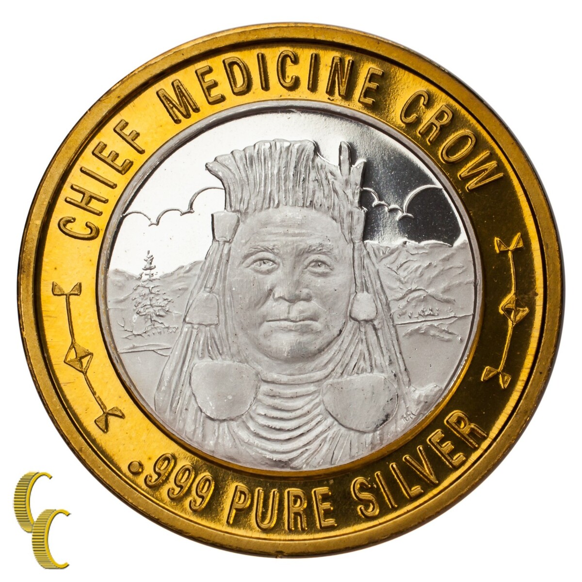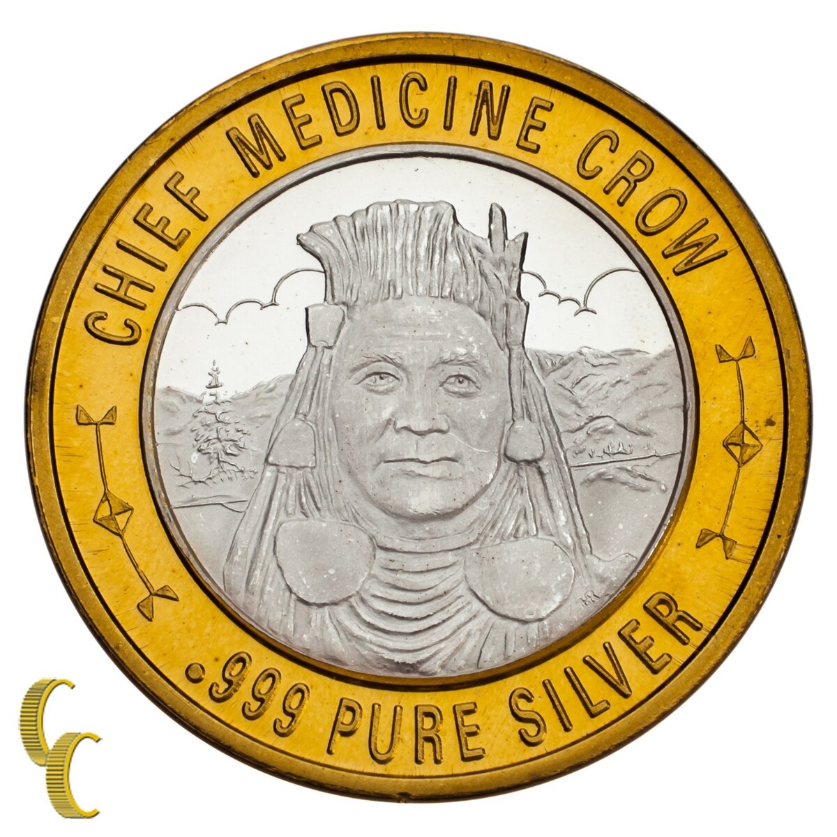 Chief Medicina Crow Nativi Americani Casino Gaming Token .999 Argento Limitata