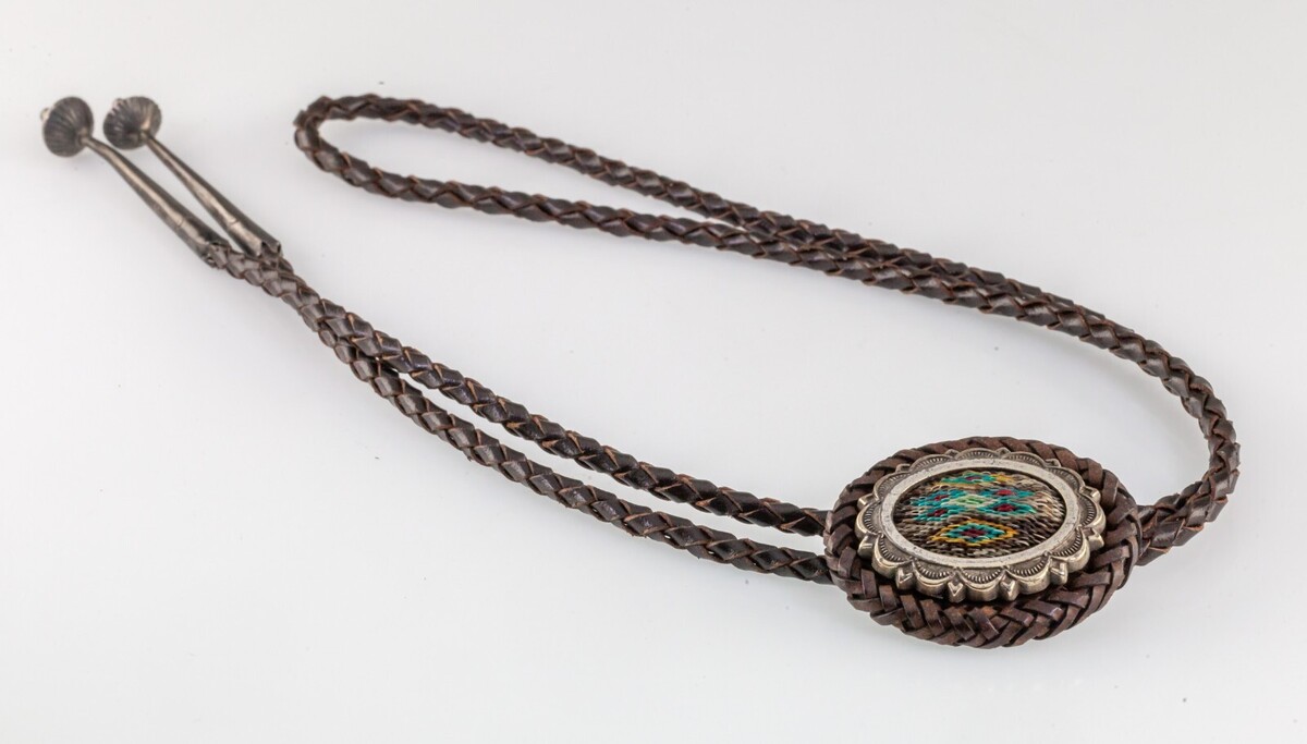 Bolo Tie In Argento Sterling Con Intarsio In Turchese E Corallo Firmato Bennett