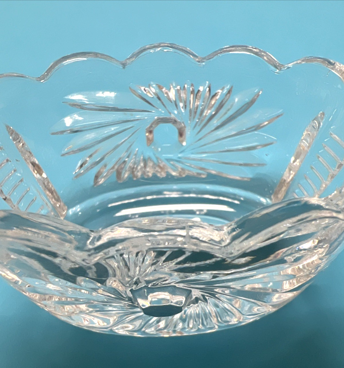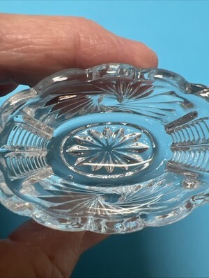 Beautiful Oval Pinwheel & Scalloped Edge Pressed Glass Open Salt Dip 2 3/8