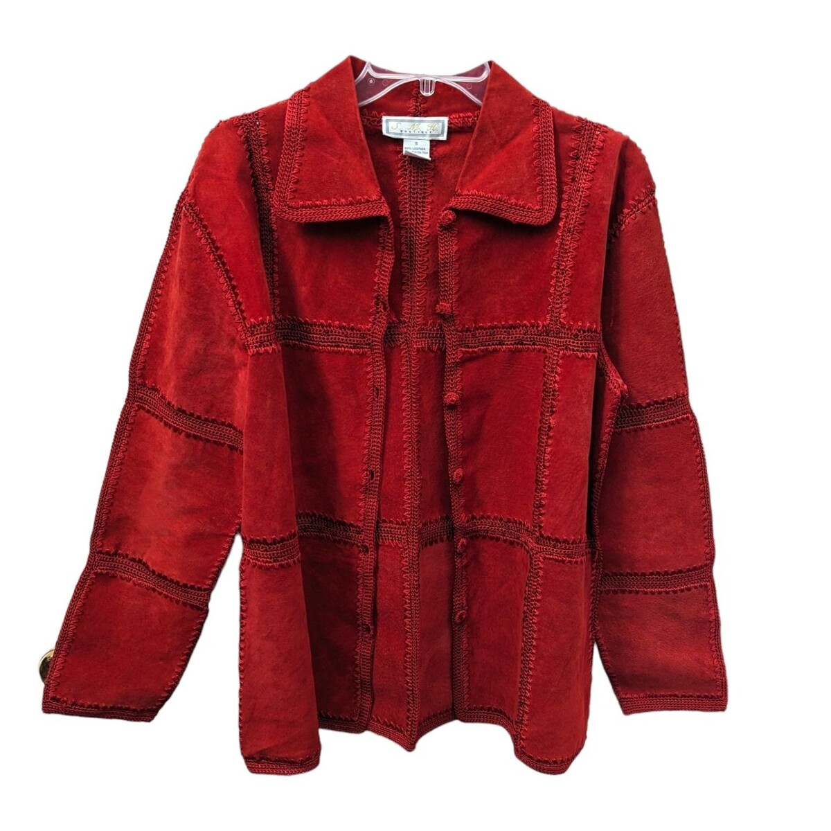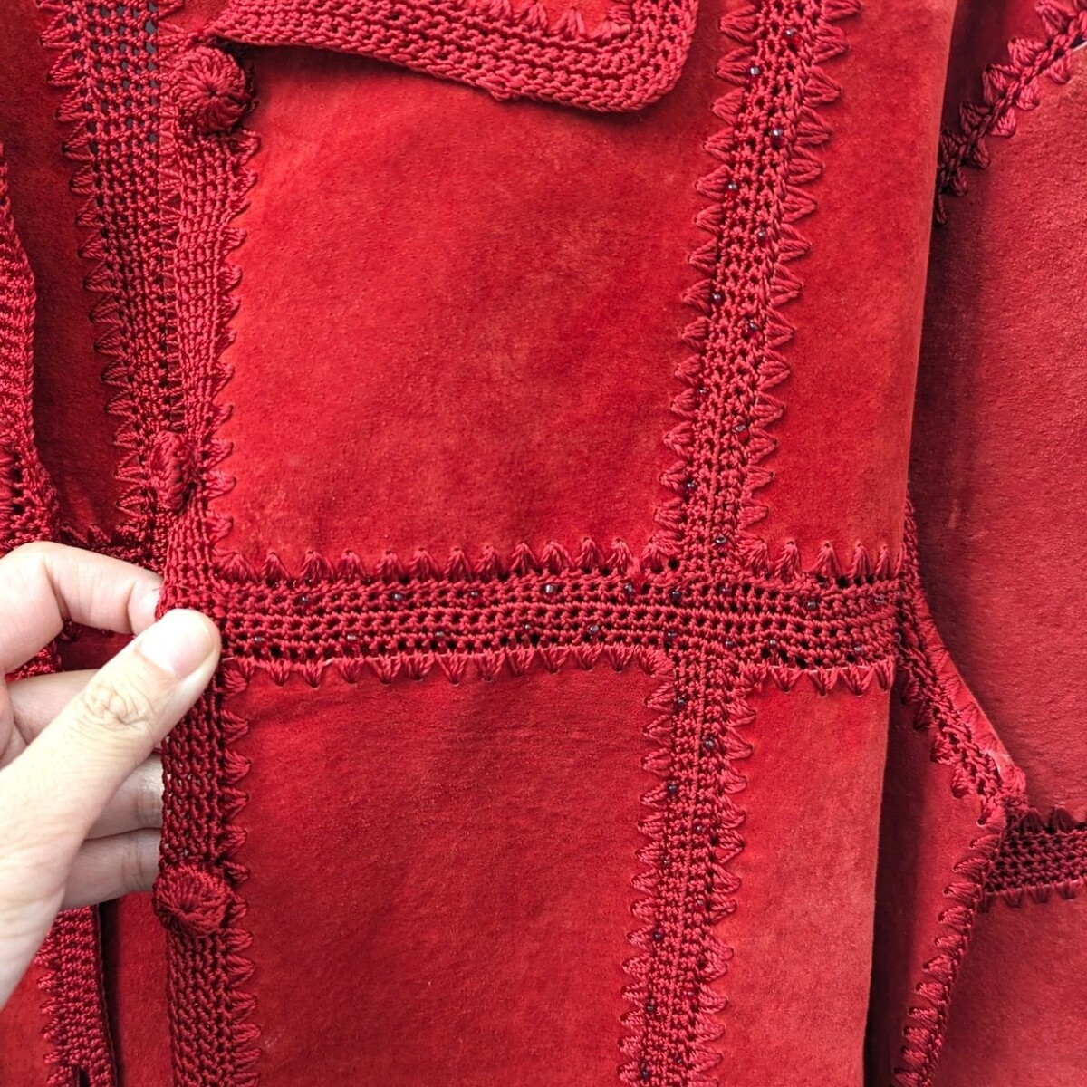 SMH Boutique Suede Leather Crochet-Trim Button-Front Western Jacket Red Size Small