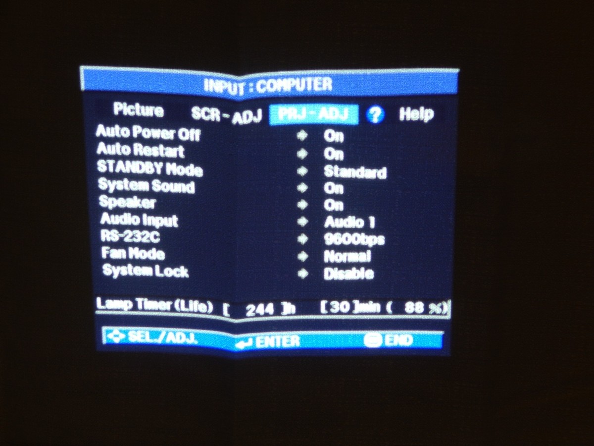 Excellent Lamp Life Remaining: The on-screen menu shows the lamp timer is at 244 Hours of use, indicating significant life remaining for the buyer.