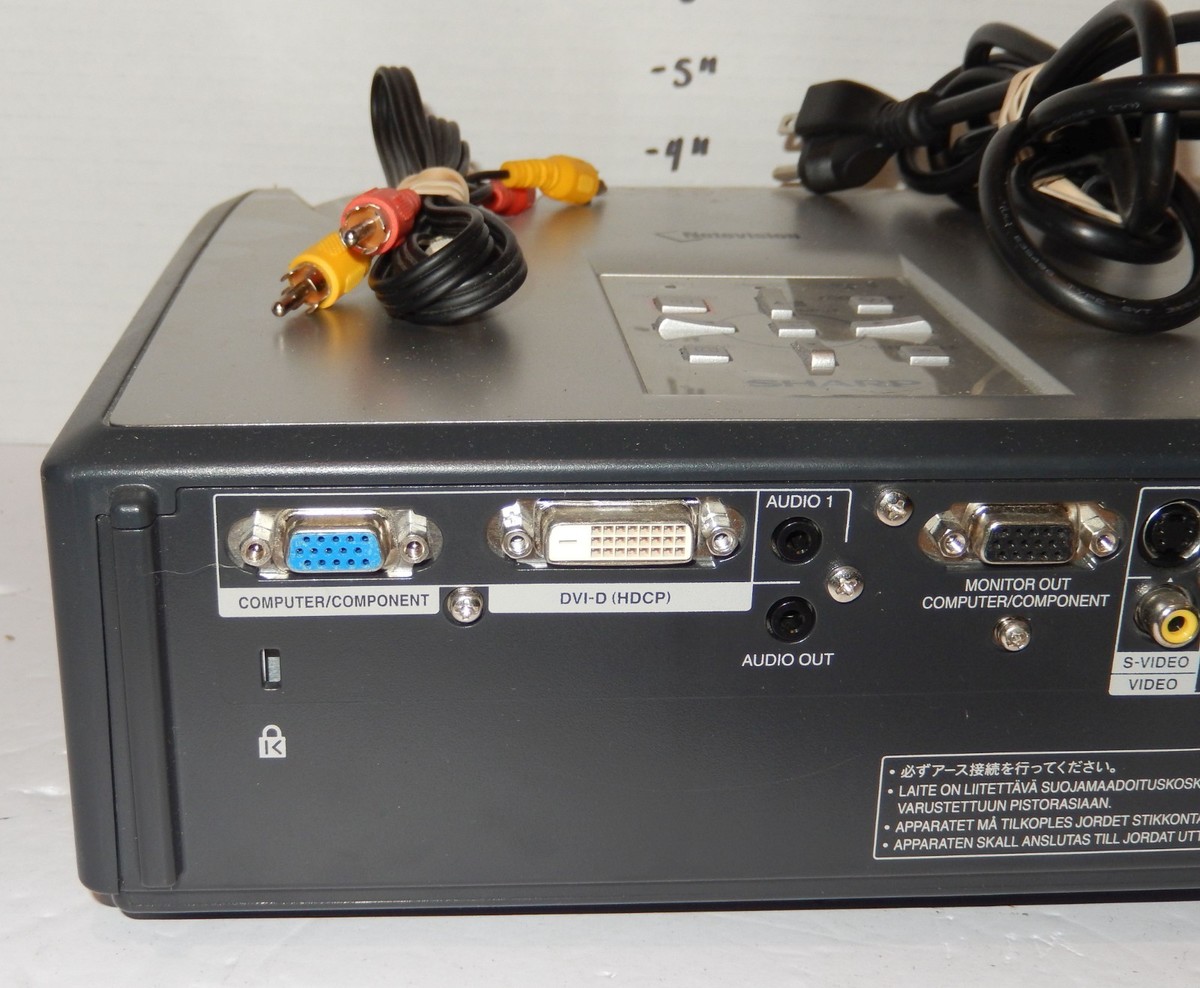 This is a reliable Sharp XR-30S DLP Projector model, also branded as Notavision. A great choice for presentations, home theater, or general use. It features multiple input options including DVI and VGA for computer connectivity, as well as S-Video and Composite video (RCA) for standard media devices.