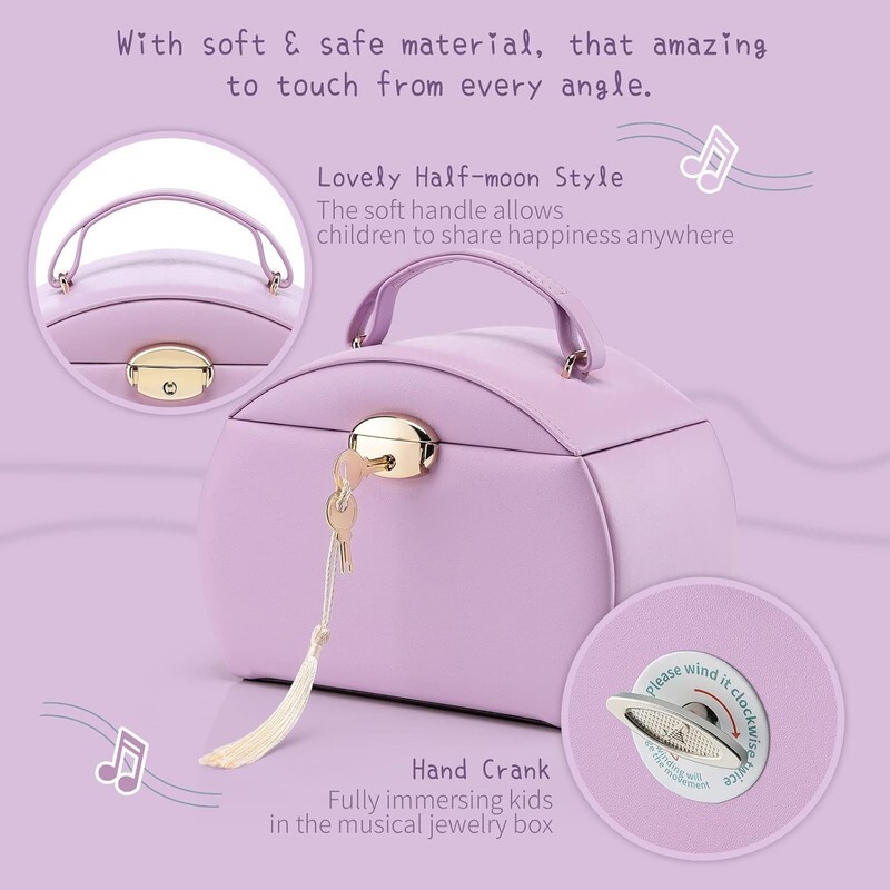 Jewelry Box Sure to Impress--The soft handle allows children to take it to find best friends to share happiness anywhere. It also comes with two keys. Go the extra mile with our thoughtful music box, say goodbye to messy jewelry toy, and for all with it
