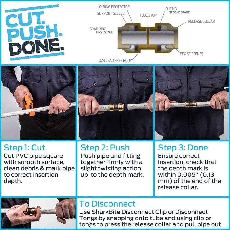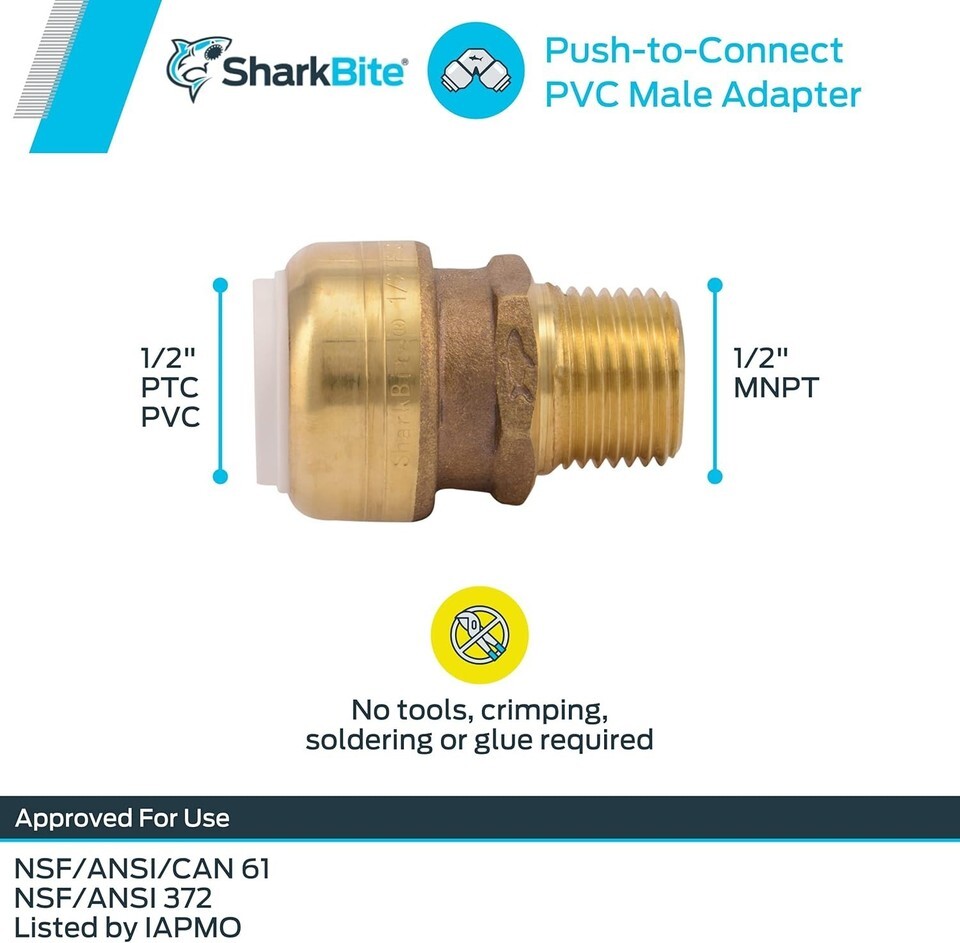 PVC Male Adapter Push-To-Connect 1/2" IPS T X 1/2" D MPT Brass, SharkBite UIP120A