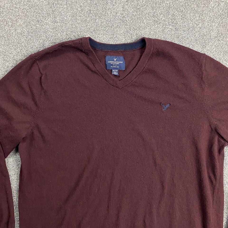 American Eagle Sweater Men's Extra Large Maroon Classic Fit V-Neck XL Cotton