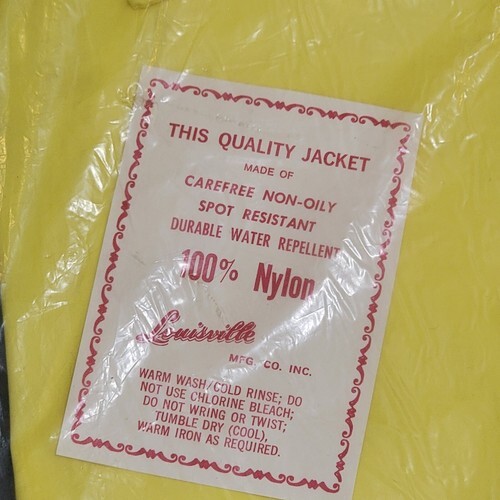 VTG 70s Louisville John Deere Yellow Nylon Lightweight Jacket USA Adult Tag Size Small.