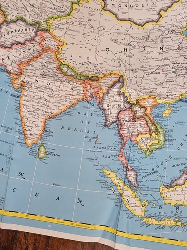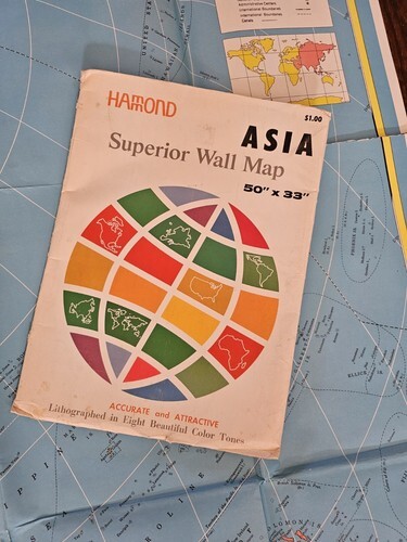 UP FOR SALE: Vintage HAMOND Asia Lithographed Superior Wall Map 50"x33"