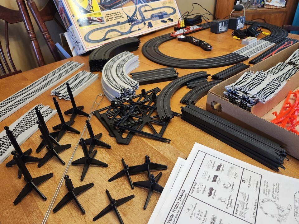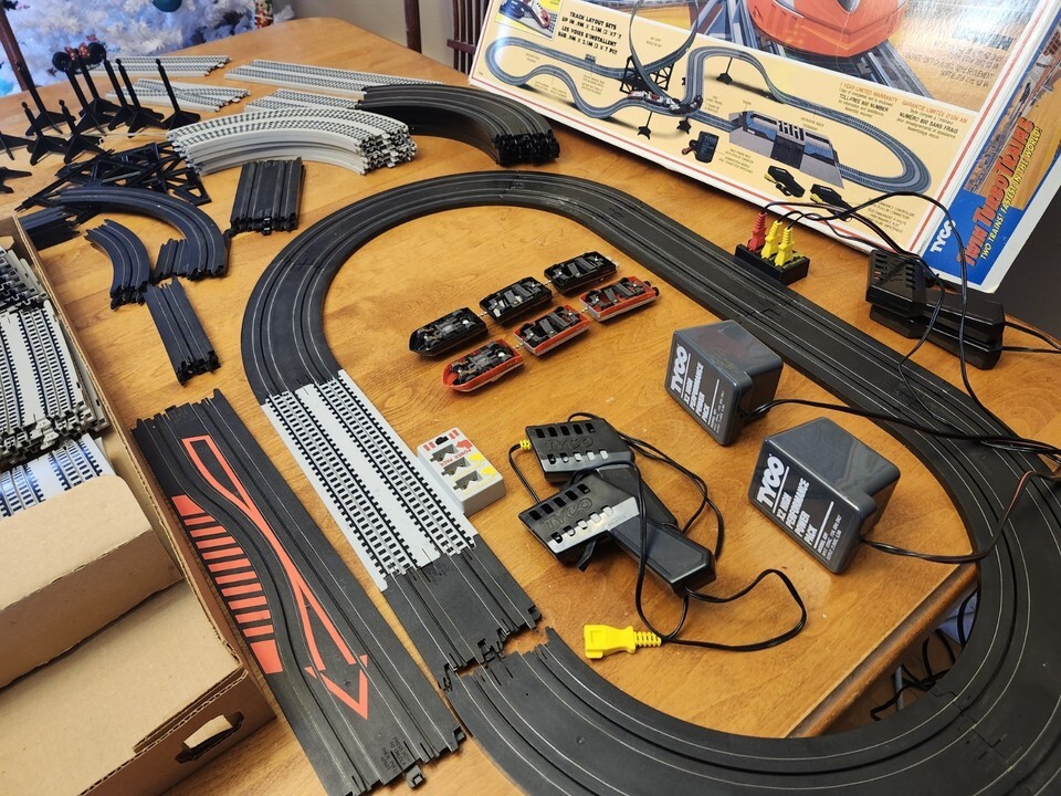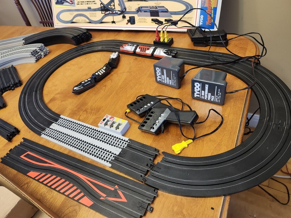 Vintage TYCO Turbo Twin Train Set with Extras in Box 1989 Slot Car