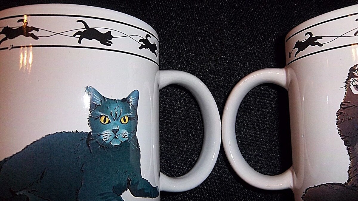 One mug features the Ayssinian and Brown Mackerel Tabby Siberian