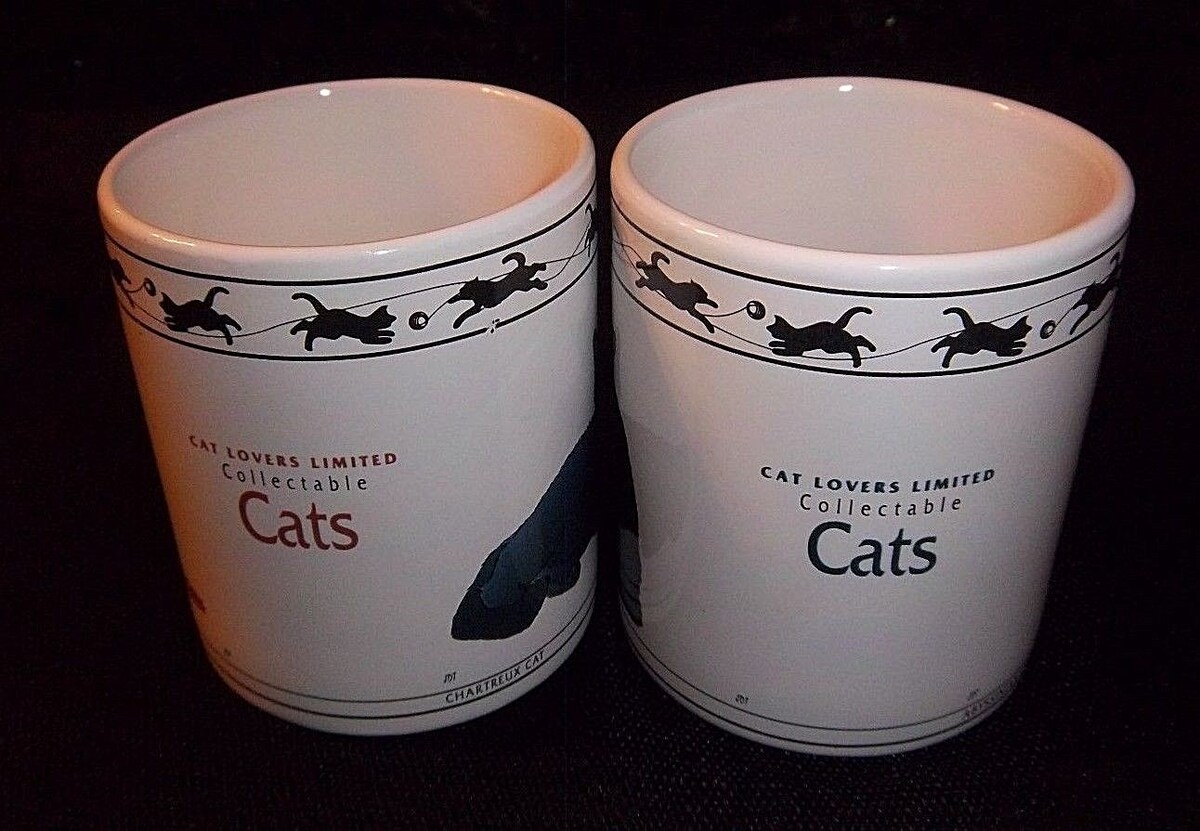 Lot 2 Cat Mugs Chartreux Turkish Van Brown Mackerel Tabby Siberian Abyssinian