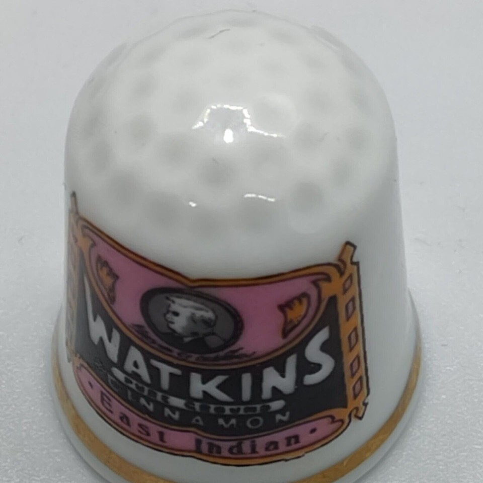 Vintage Ceramic THIMBLE Collectible Gift Watkins Pure Ground Cinnamon Label