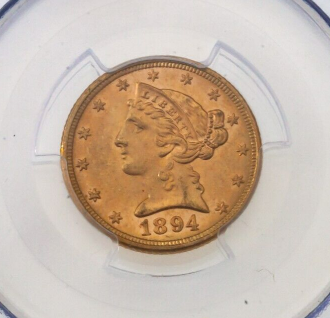 1894 Gold Liberty $5 Half Eagle Graded by PCGS as MS-64