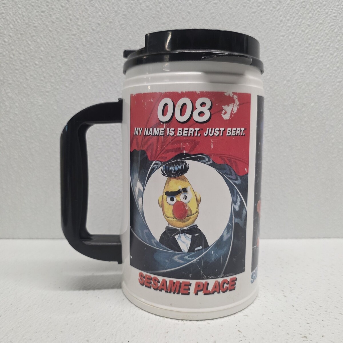 Sesame Place Sesame Street Travel Cup Mug Whirley - Bert Ernie Movie Spoofs. Crack by the handle, crack doesn't go through to the inside, see images for condition. Images show actual item that will ship.