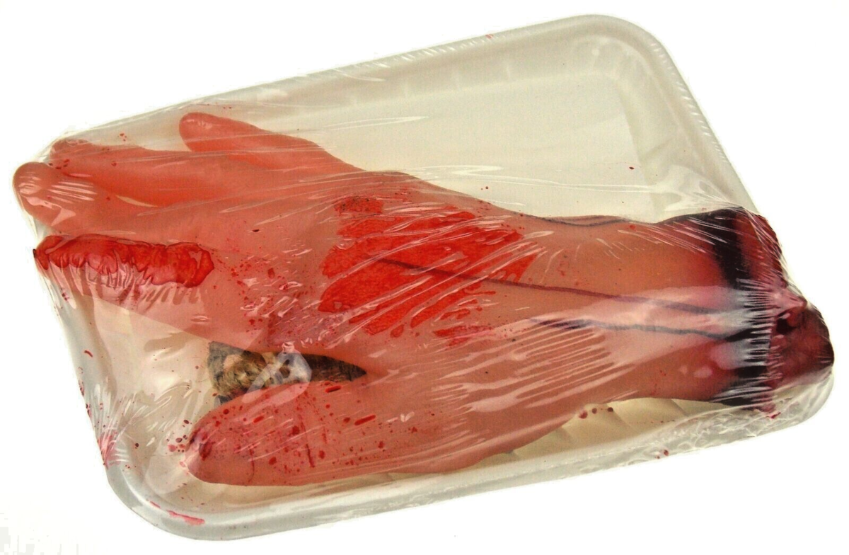 Bloody SEVERED HAND Butcher Chop Shop Meat Tray Body Part Halloween Horror Prop