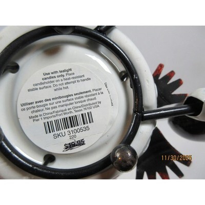 Pier 1 Imports Metal Snowman Tea Light Candle Holder Red Scarf Hat