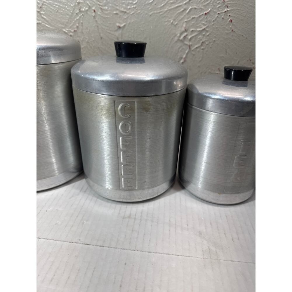 Vintage MCM Spun Aluminum Canister Set Flour and 49 similar items
