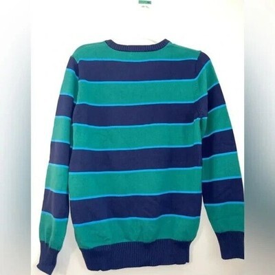Boy's Long Sleeve Striped Pull-Over Sweater (Size XL - 16) NAVY STRIPE ~ NEW!!! Add some style to your little boy's wardrobe with this pullover sweater from Cat Jack. Made of 100% cotton with a tight-knit fabric type, this navy stripe sweater features long sleeves and a crew neck for a casual occasion. The XL size (16) fits regular and is machine washable for easy garment care. The striped pattern and casual theme make it perfect for the seasons. This item has no graphic print or vintage details and is suitable for your childs' wardrobe. Made in Indonesia, this sweater can be worn for any desired performance or activity. Shipped from a smoke free environment.