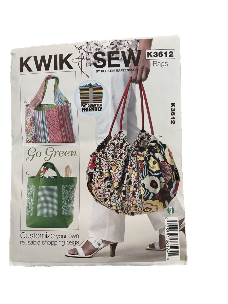 Kwik Sew Pattern for Reusable Shopping Bags w/ Supplies Needed NEW