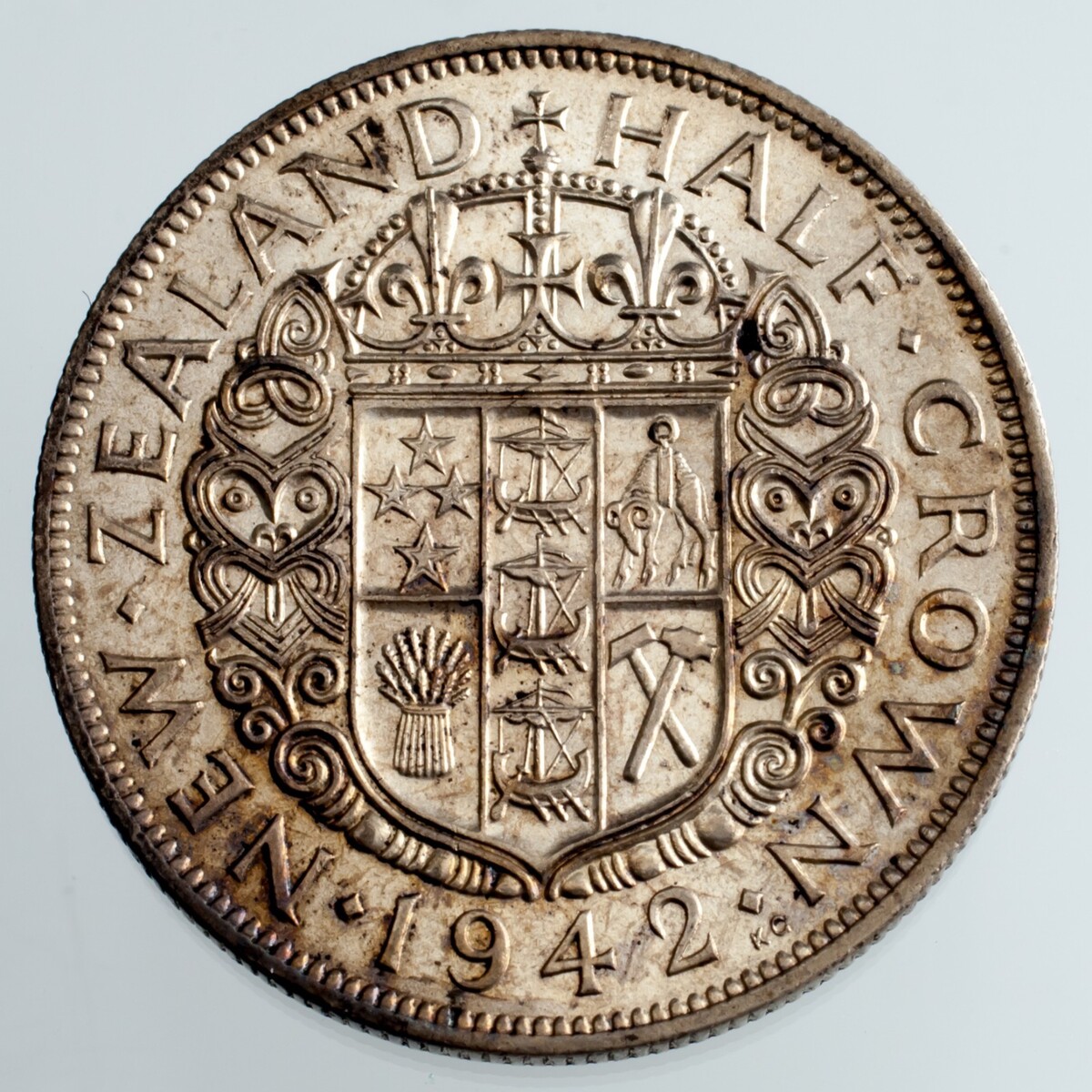 1942 New Zealand 1/2 Crown KM #11 XF Condition
